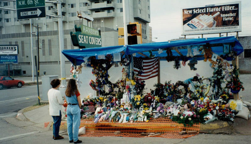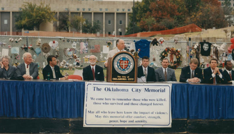 Twenty years ago the final design selected from the International Design Competition was unveiled. 624 designs were received from all 50 states and 23 countries. These designs were put on public display for several days and more than 10,000 people stood in line to see them. The field was narrowed to five designs and a final design was selected and announced in July 1997. The design was submitted by Butzer Design Partnership then of Berlin, Germany, and now of Oklahoma City. Designers Hans and Torrey Butzer with Sven Berg created the Outdoor Symbolic Memorial.